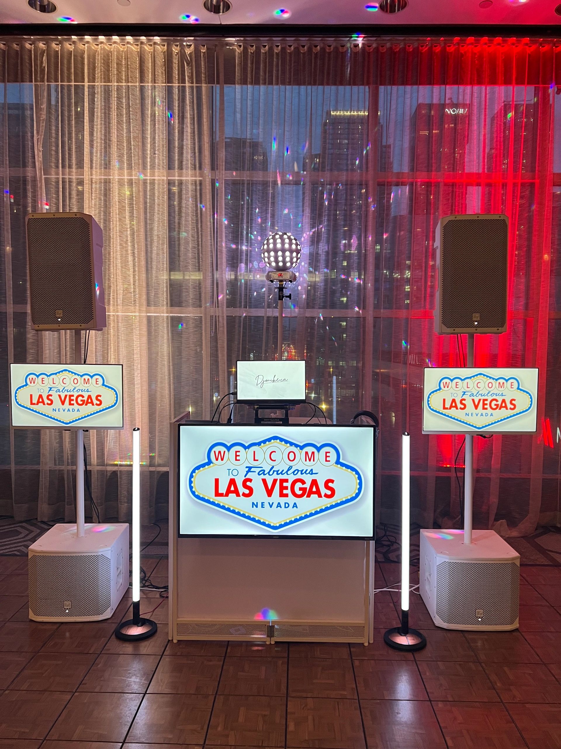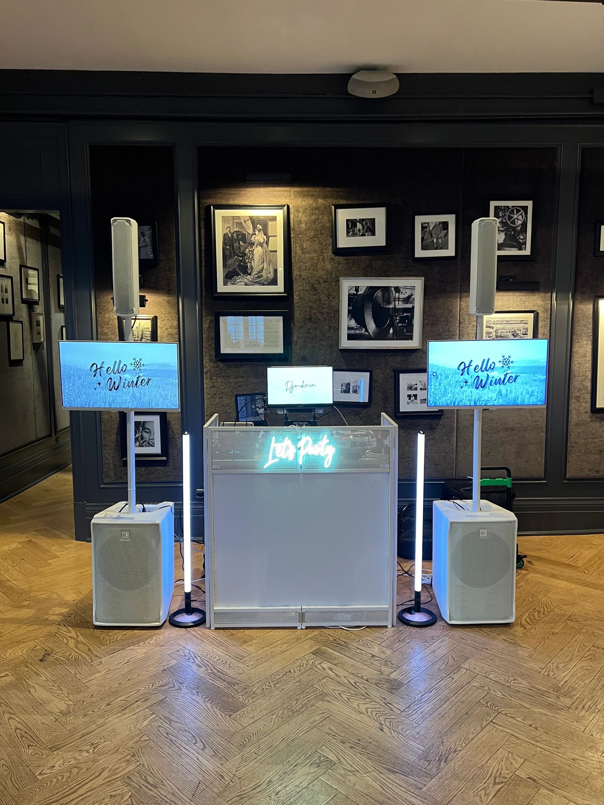 This amazing dj booth set up with extra TVs for video / logos $3000